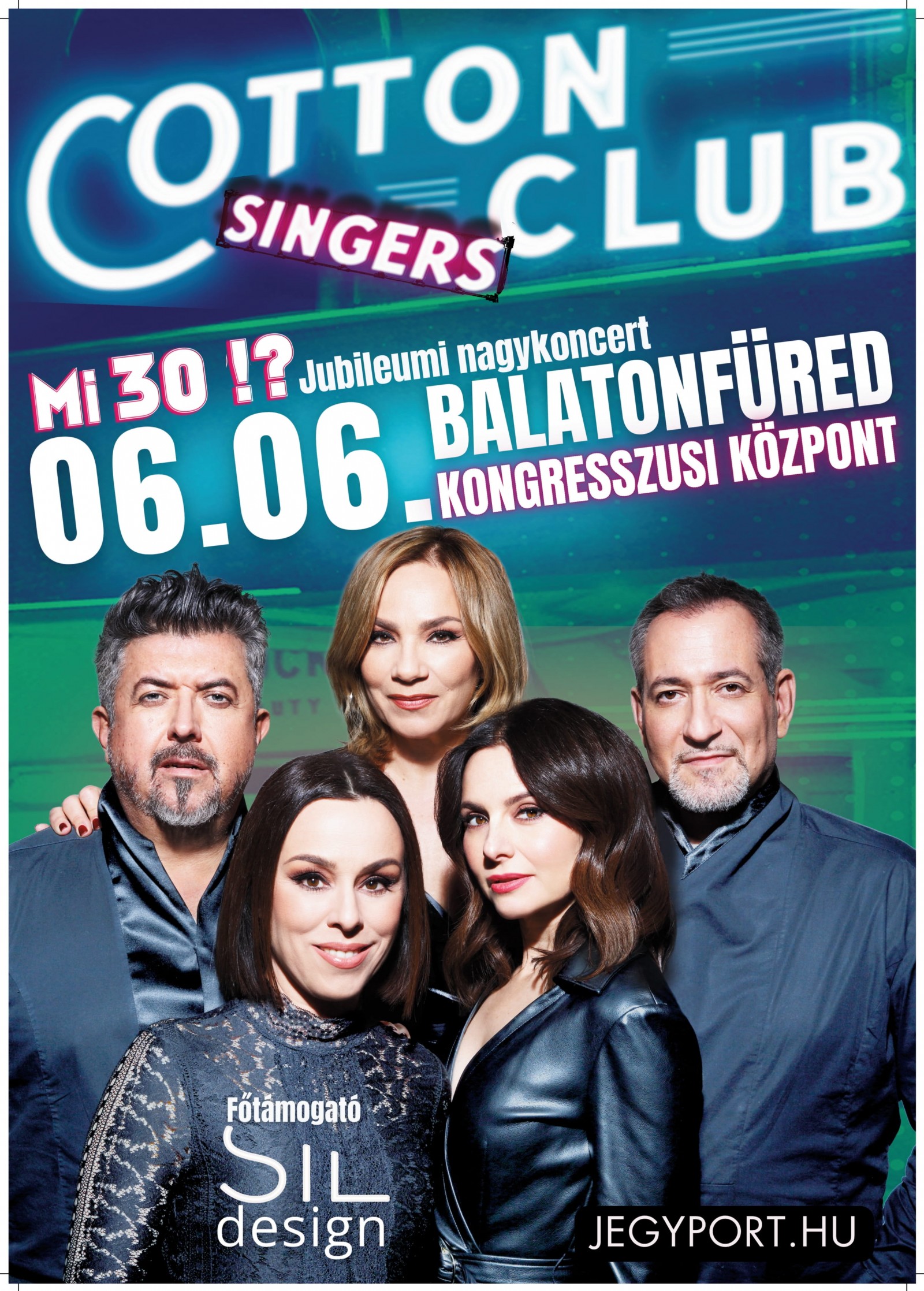 A Balatonfüredi Kongresszusi Központ kiváló helyszíne lesz a 30 éves Jubileumi koncertsorozatunknak. Fellép a zenekar öt legmeghatározóbb énekese: Kozma Orsi, Szűcs Gabi, Zsédenyi Adrienn (Zséda), Fehér Gábor és László Boldizsár, valamint a kibővített Cotton Club Band.