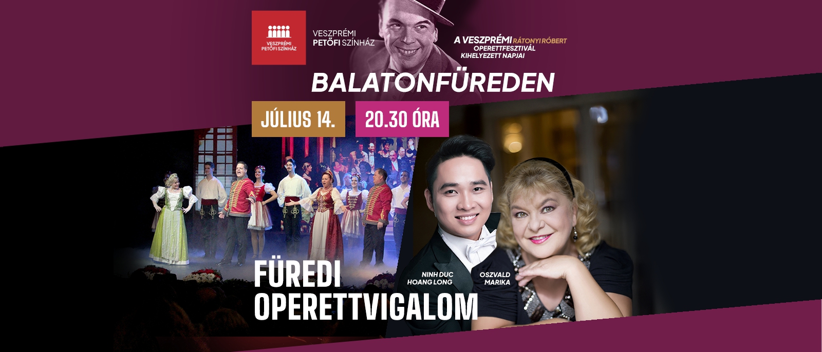 A két kihelyezett nap fénypontja a 14-ei, nagyszabású, igazán méltó helyen, a korszerű Balatonfüred Kongresszus Központban megrendezett, 20 óra 30 perckor kezdődő, kétrészes Füredi Operettvigalom című gála lesz. Ezen a Veszprémi Petőfi Színház társulatának számos művésze mellett két igazi sztár, a Kossuth- és Jászai Mari-díjas, érdemes művész, a Halhatatlanok Társulatának örökös tagjává választott Oszvald Marika, valamint a Magyar Állami Operaház vietnami származású tenor magánénekese, a Budapesti Operettszínház tagja, Ninh Duc Hoang Long is fellép. A tüzes magyar virtust a legmagasabb színvonalon bemutató gálán az élő zenei kíséretet Horváth Elemér Emi és zenekara szolgáltatja.