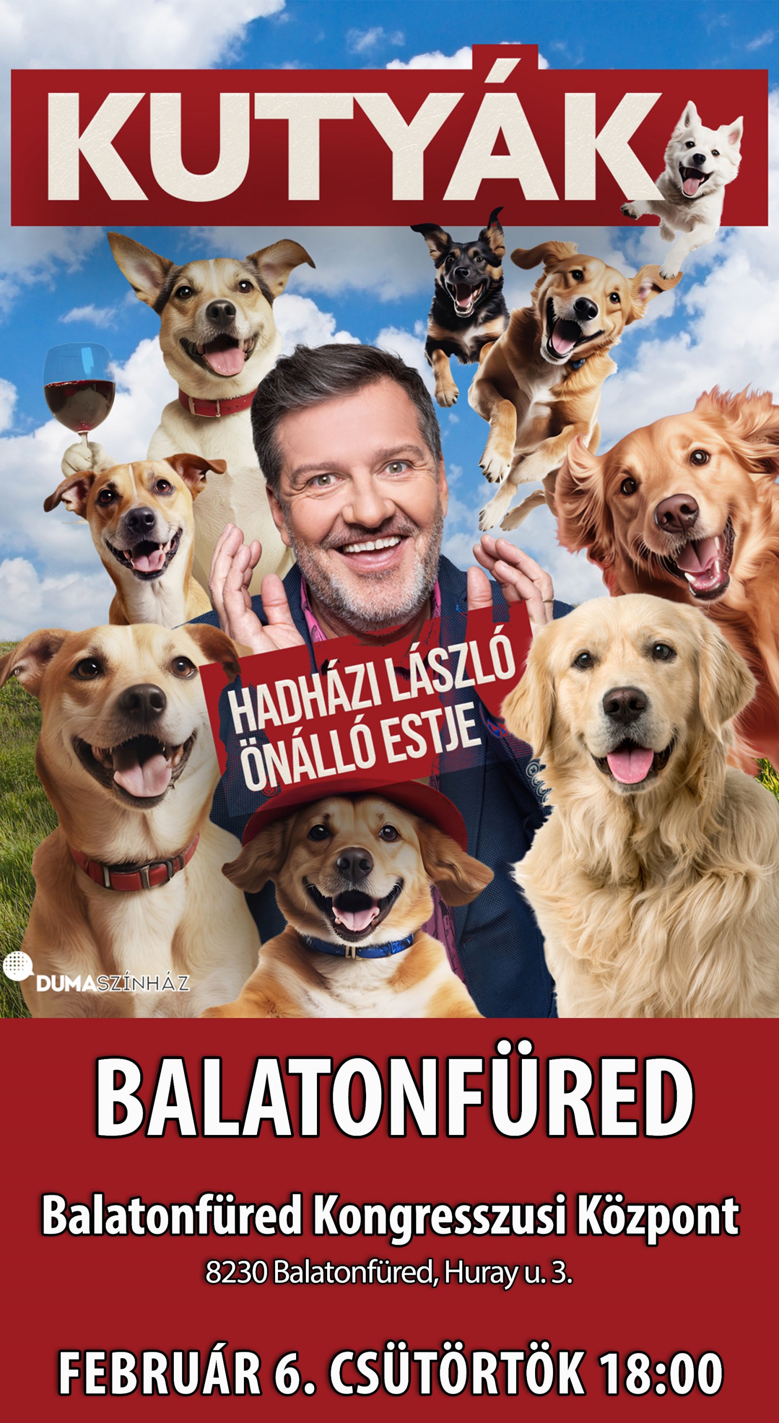 Készüljön fel egy fergeteges estére, hiszen a Dumaszínház szervezésében Hadházi László új önálló estjével érkezik hozzánk! Az ország egyik legnépszerűbb humoristája ezúttal a "Kutyák" témáján keresztül hozza el sajátos, csípős humorát és felejthetetlen történeteit.